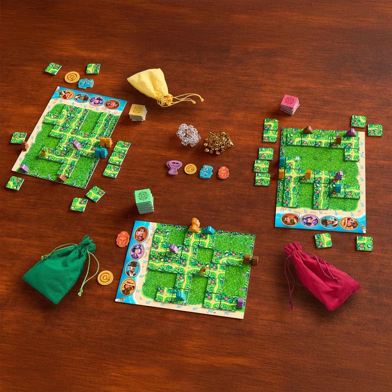 Cada jugador tiene una cuadrícula personal con cuatro exploradores en los bordes y cuatro templos del color correspondiente en otras posiciones. El objetivo es construir senderos continuos desde cada explorador hasta su templo del mismo color. En cada turno, el jugador designado como guía saca una loseta al azar del montón y anuncia qué loseta es; todos los jugadores colocan esa loseta en alguna posición de su cuadrícula o la descartan para avanzar un explorador un paso.