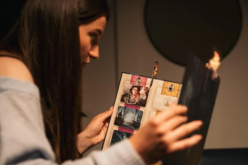 La mejor combinación de Dixit y Cluedo disponible. Para grupos familiares que quieren deducción cooperativa con atmósfera, sin la complejidad de Detective.