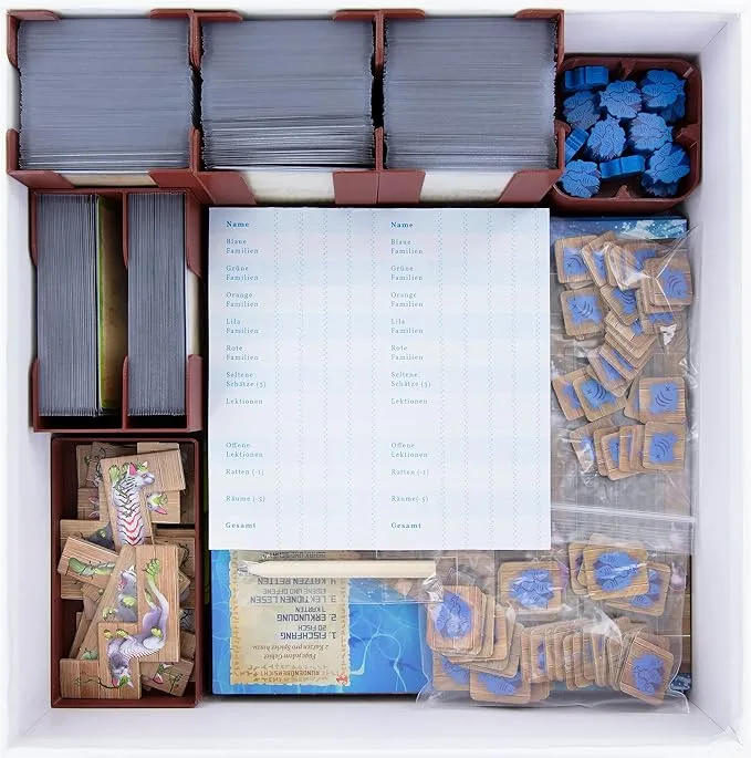 Hay juegos que tienen un setup de quince minutos no porque sean complejos, sino porque los componentes están amontonados en bolsas de plástico sin ningún orden dentro de la caja. Buscar los tokens correctos entre cincuenta tipos distintos, separar las cartas por mazo antes de cada partida, encontrar la miniatura que falta en el fondo de la caja: todo eso es tiempo que se gasta antes de que empiece el juego y que acumula fricción sesión tras sesión.